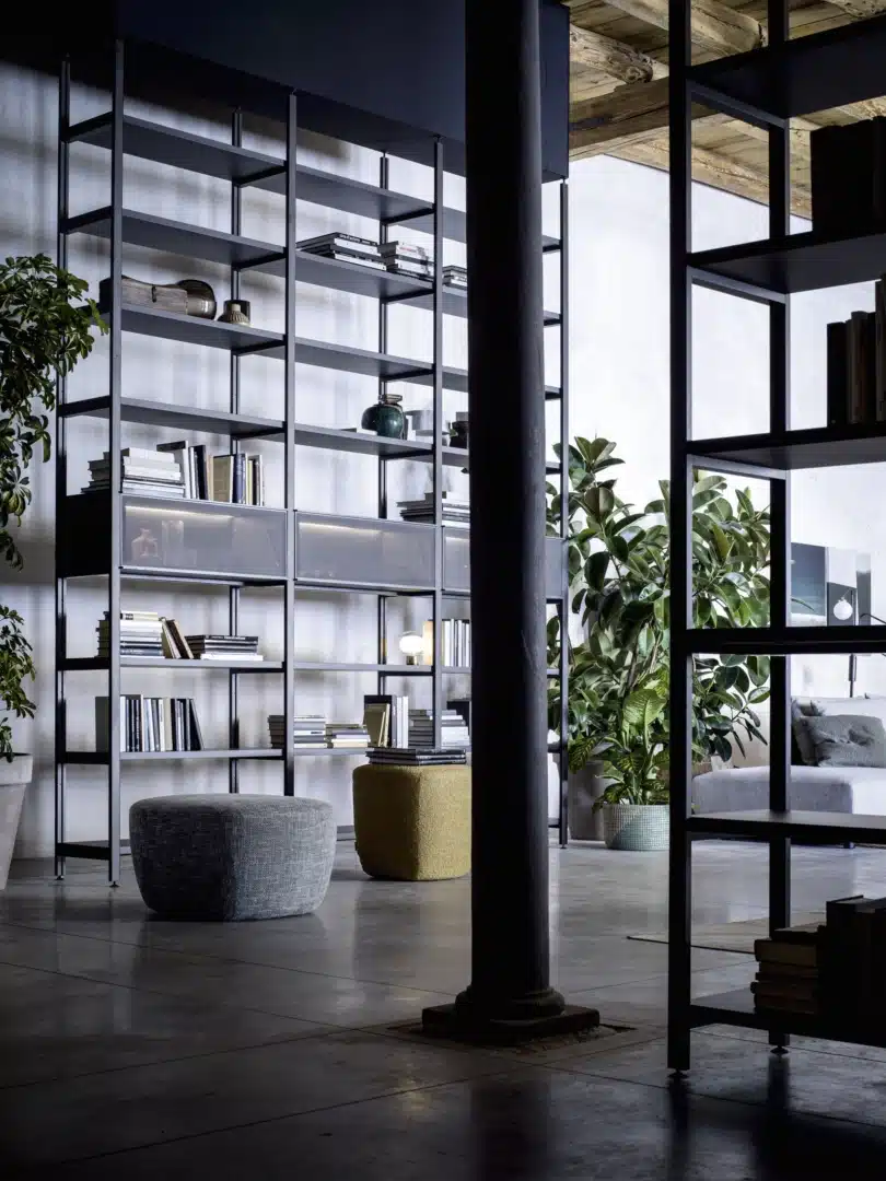 Novamobili - Pontile Bookcase. Mac Sofas. Shadows Coffee Tables. Boiserie Wall Panelling & Box 18 (modular) Wall Unit
