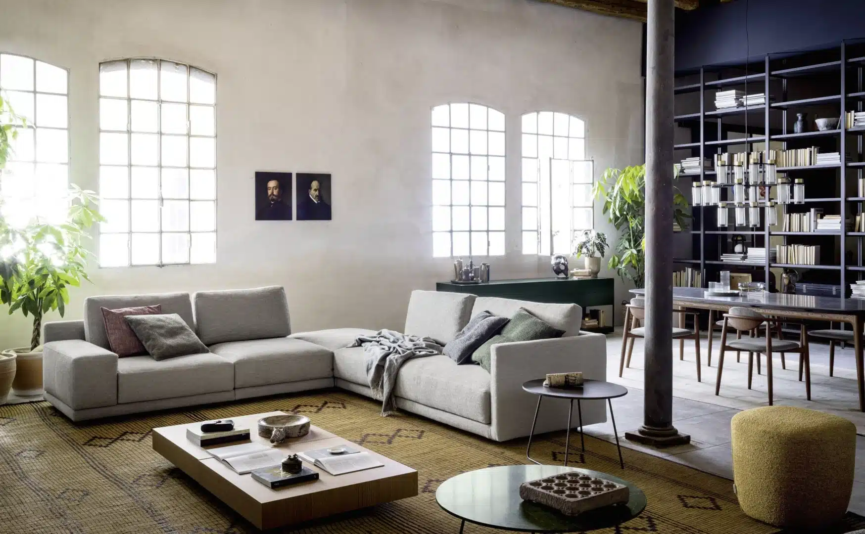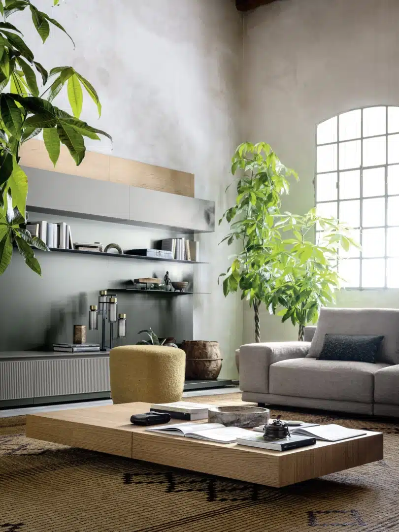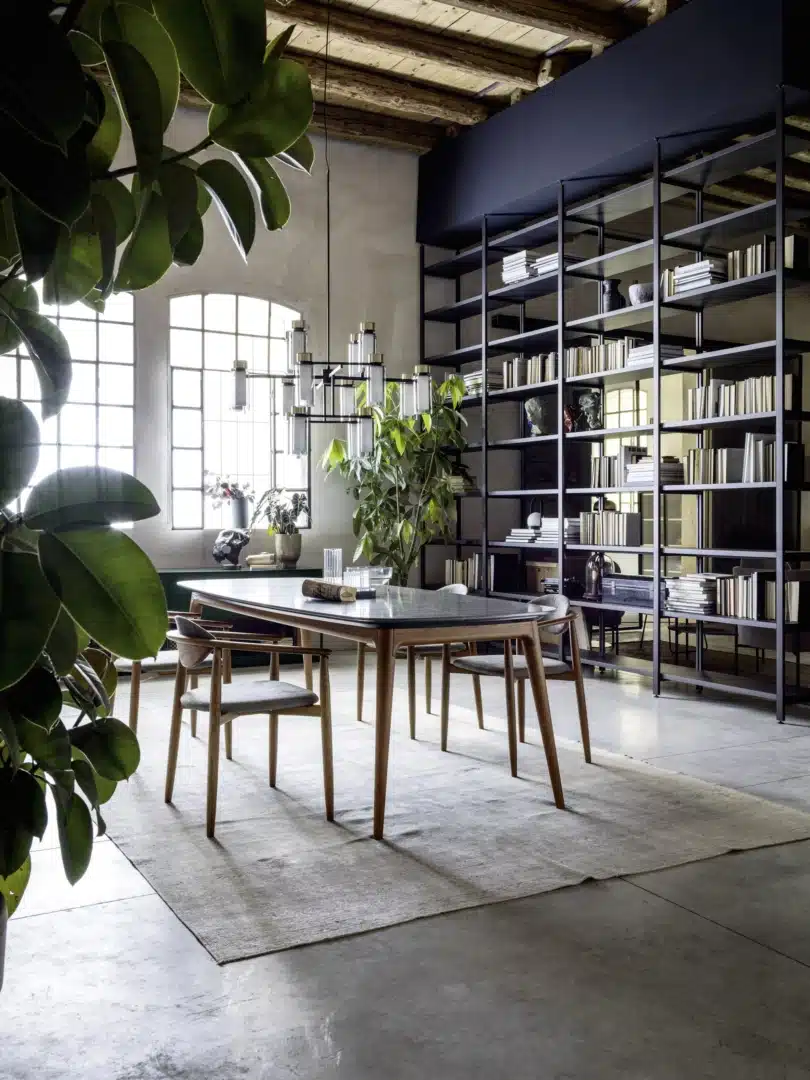 Novamobili - Pontile Bookcase. Haiku Armchairs. Kin Occasional Tables.