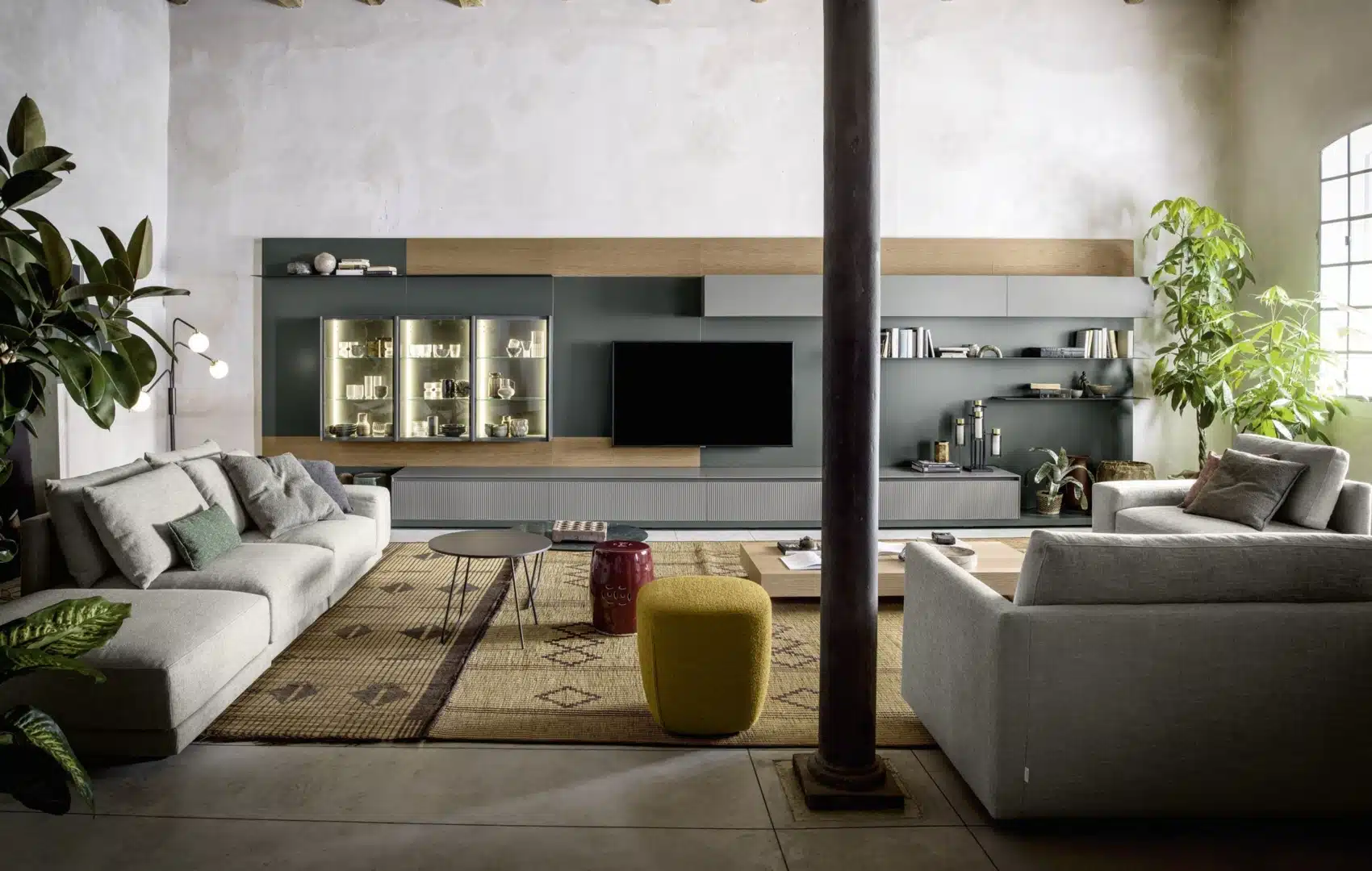 The lounge is the true heart of the home—a multifunctional space where work and relaxation naturally overlap. Designed to support the bachelor’s daily rhythm, it accommodates focused working hours as effortlessly as evening downtime.
