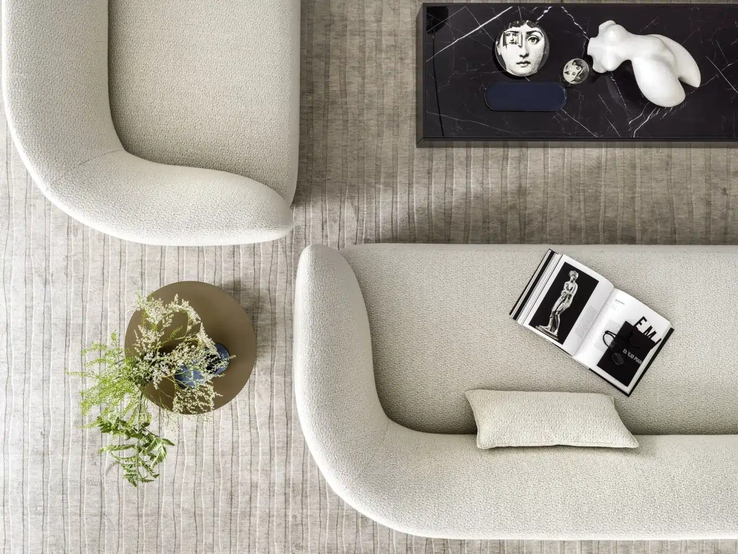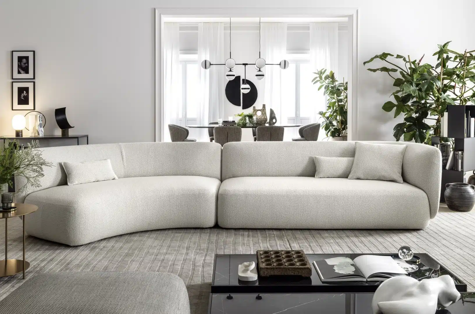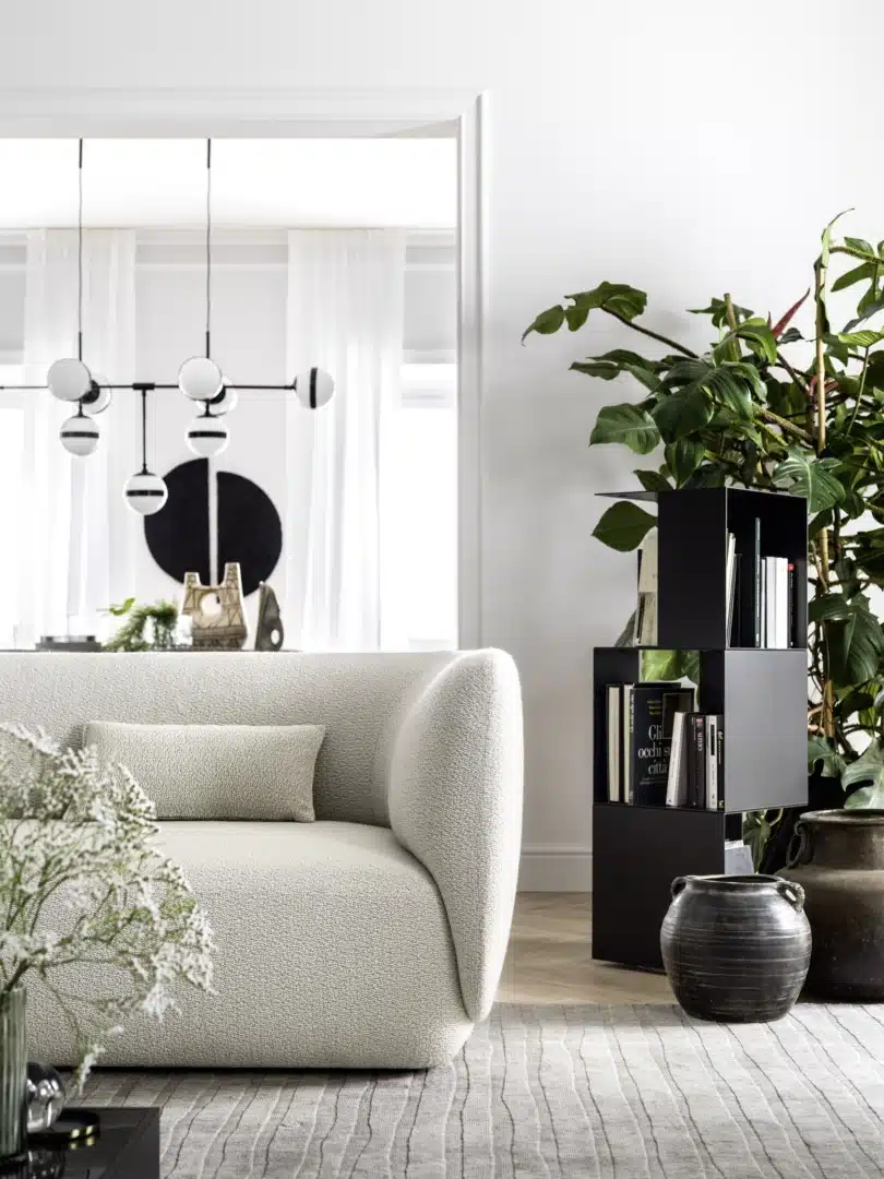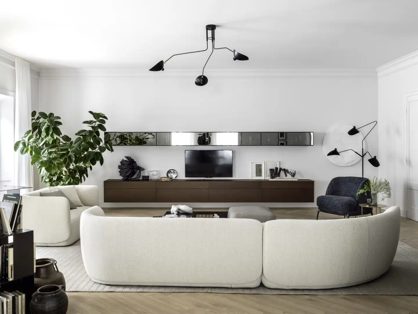 The living room embraces warmth through cozy, harmonious shapes. Soft seating invites long conversations, reflection, and shared moments, while carefully curated furniture provides a sense of balance and calm.