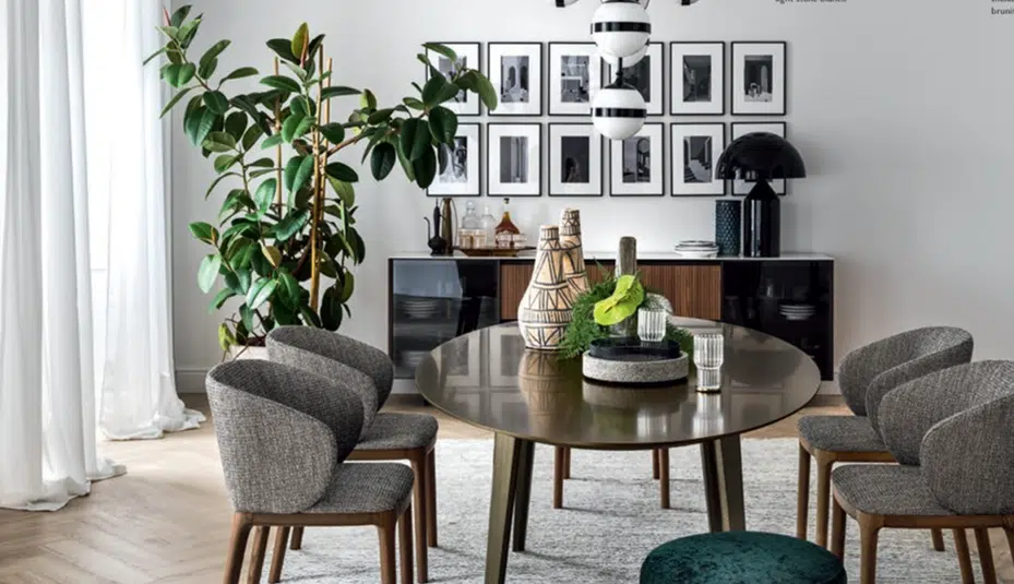 The dining room is classical yet welcoming—designed to adapt effortlessly from slow mornings to elegant evenings.