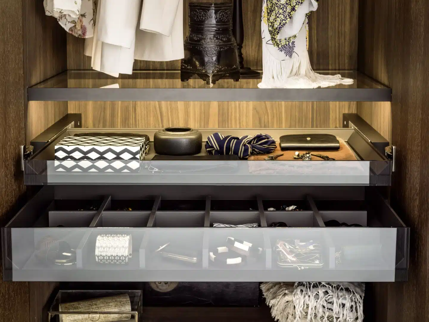 In the bedroom, Novamobili took inspiration from the couple’s classical taste and enriched lifestyle—reinterpreting it through a contemporary lens.